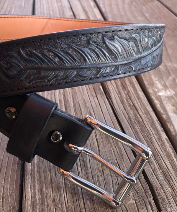 Belts are a big project that are only offered on by special order. All carved belts have a sewn in liner. While we have some examples of carvings and finished belts, each one is produced individually and we do not have any in stock for purchase.