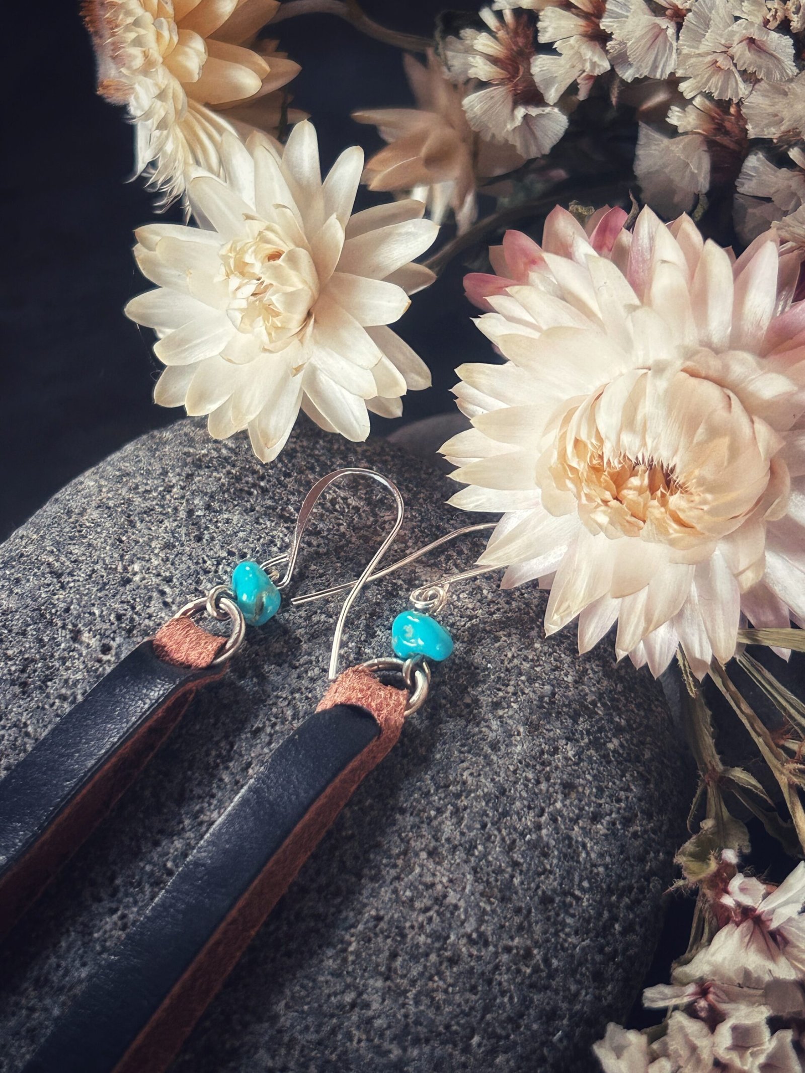 The earrings shown are an example of the product. While similar color and size of stones are individually selected and paired for this product, each stone has a unique shape, color and vein matrix patterns. All stones are their natural colors and have been graded for authenticity.