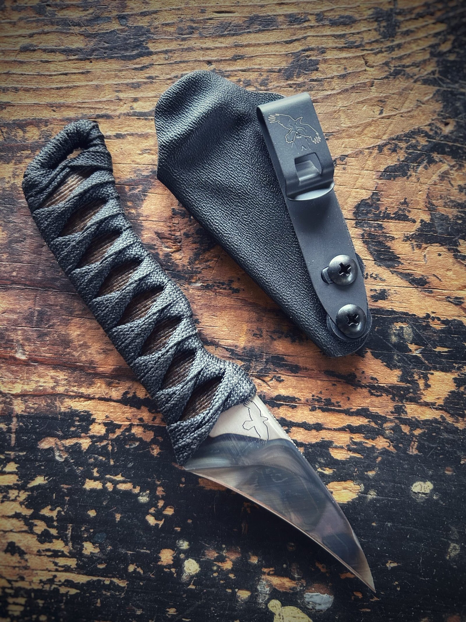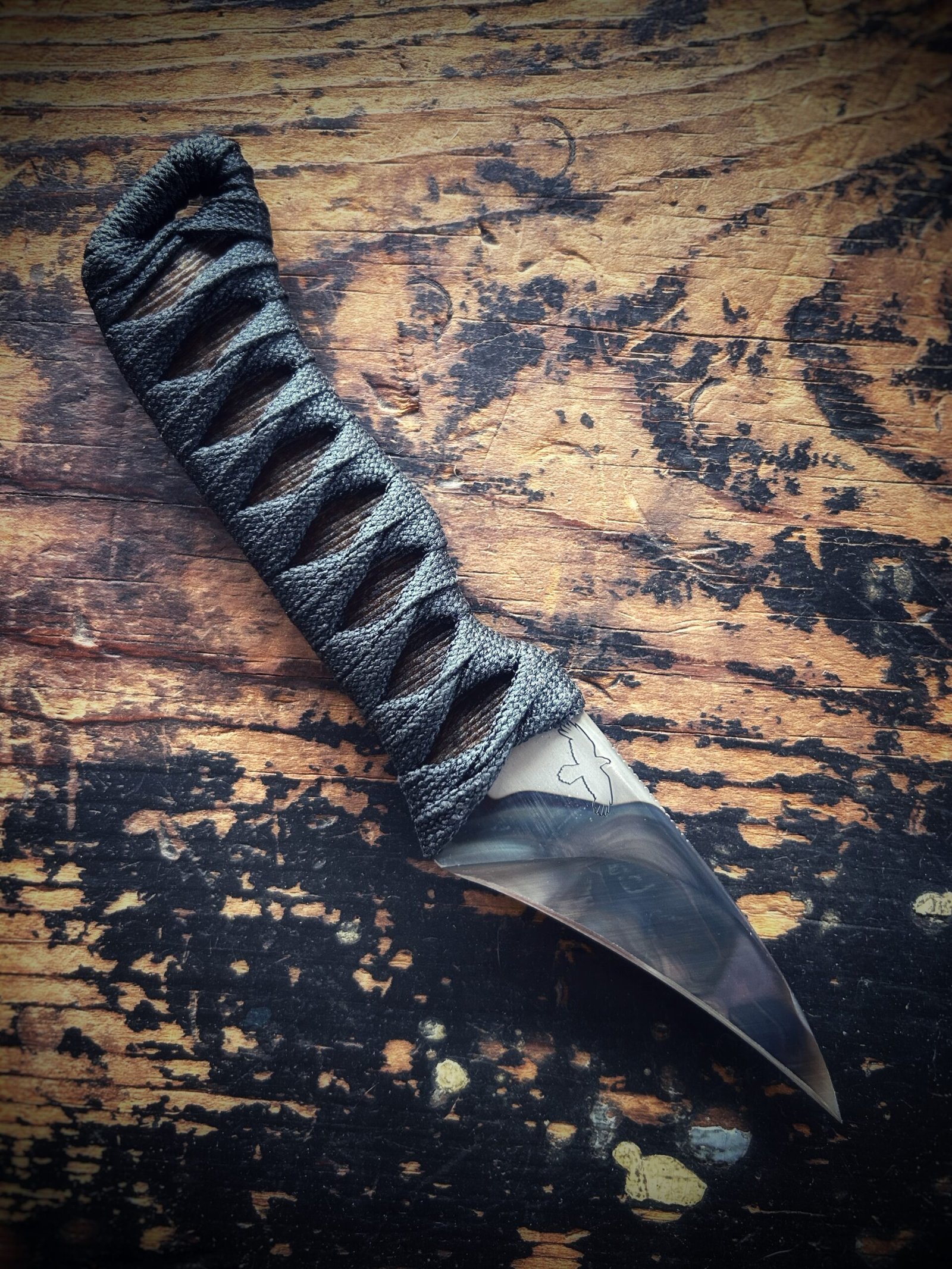 Wrap: Burnt jute with black nylon ito.