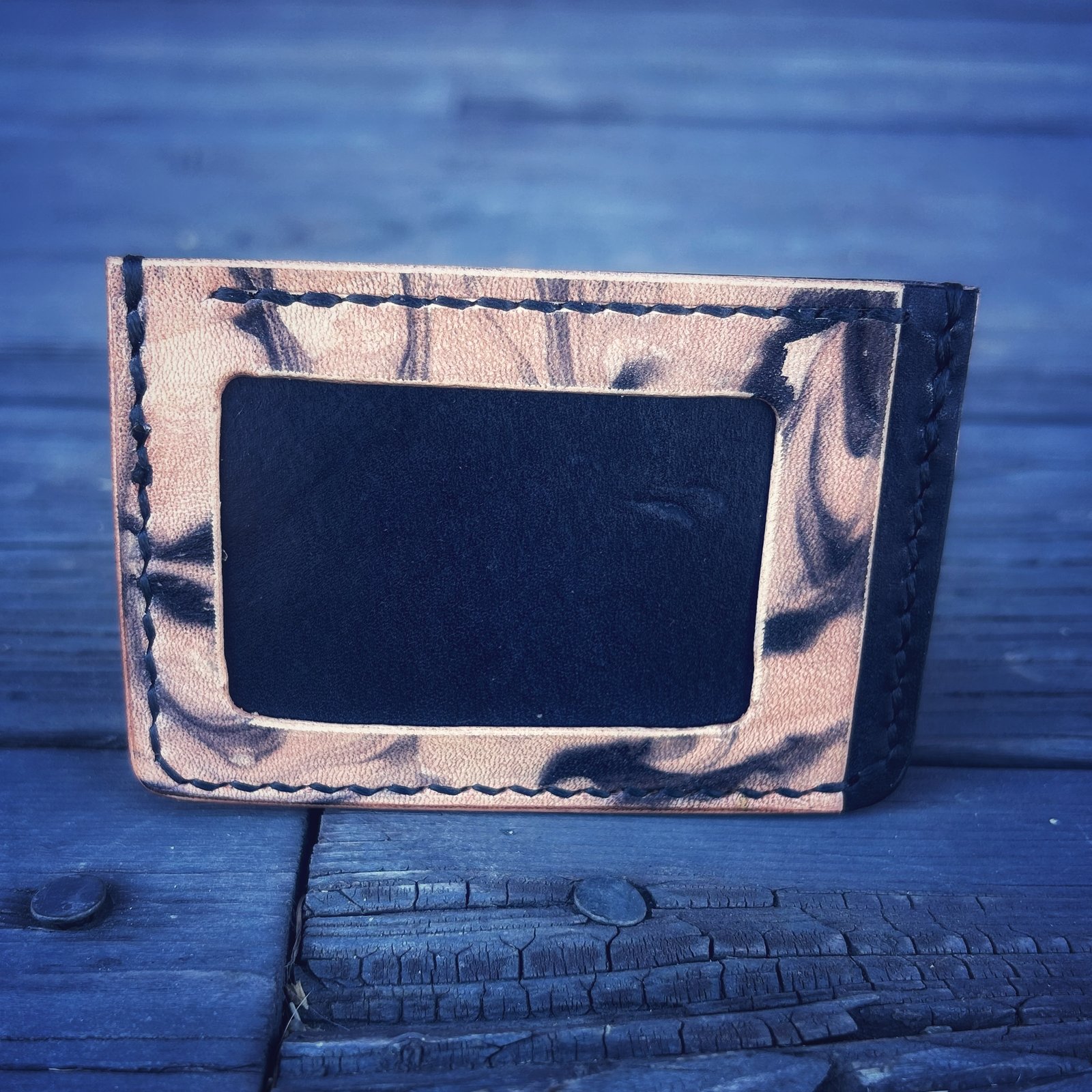 The Granite Wallet has three card slots (which can handle more cards once broken in) and a small Windy Raven logo stamped on the front pocket. The back pocket features an open center for ID.