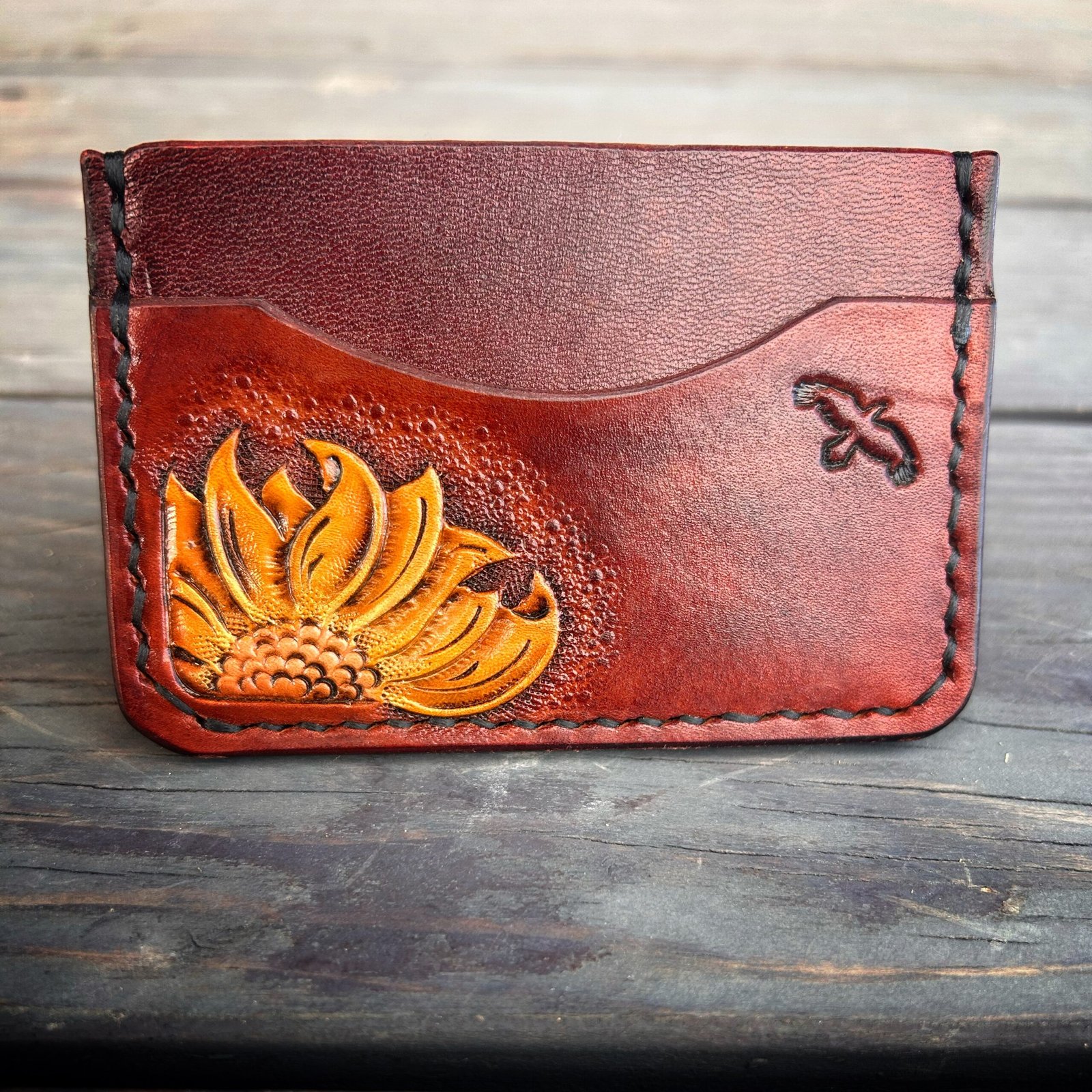 The Granite Wallet has three card slots (which can handle more cards once broken in) and a small Windy Raven logo stamped on the front pocket. The back pocket features an open center for ID.