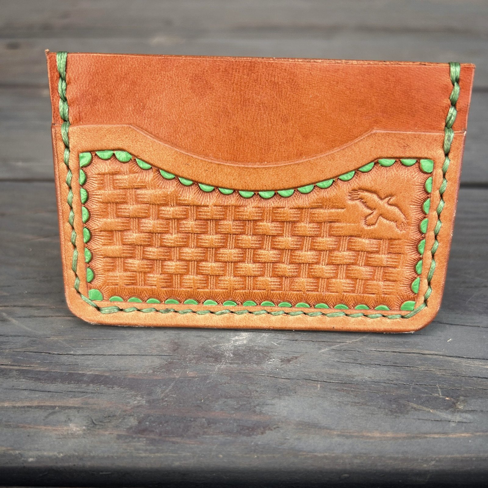 The Granite Wallet is composed of full grain vegetable-tanned leather. All wallets are handmade, and each carving features original art and dye work, making each one unique. Minor color differences can occur.