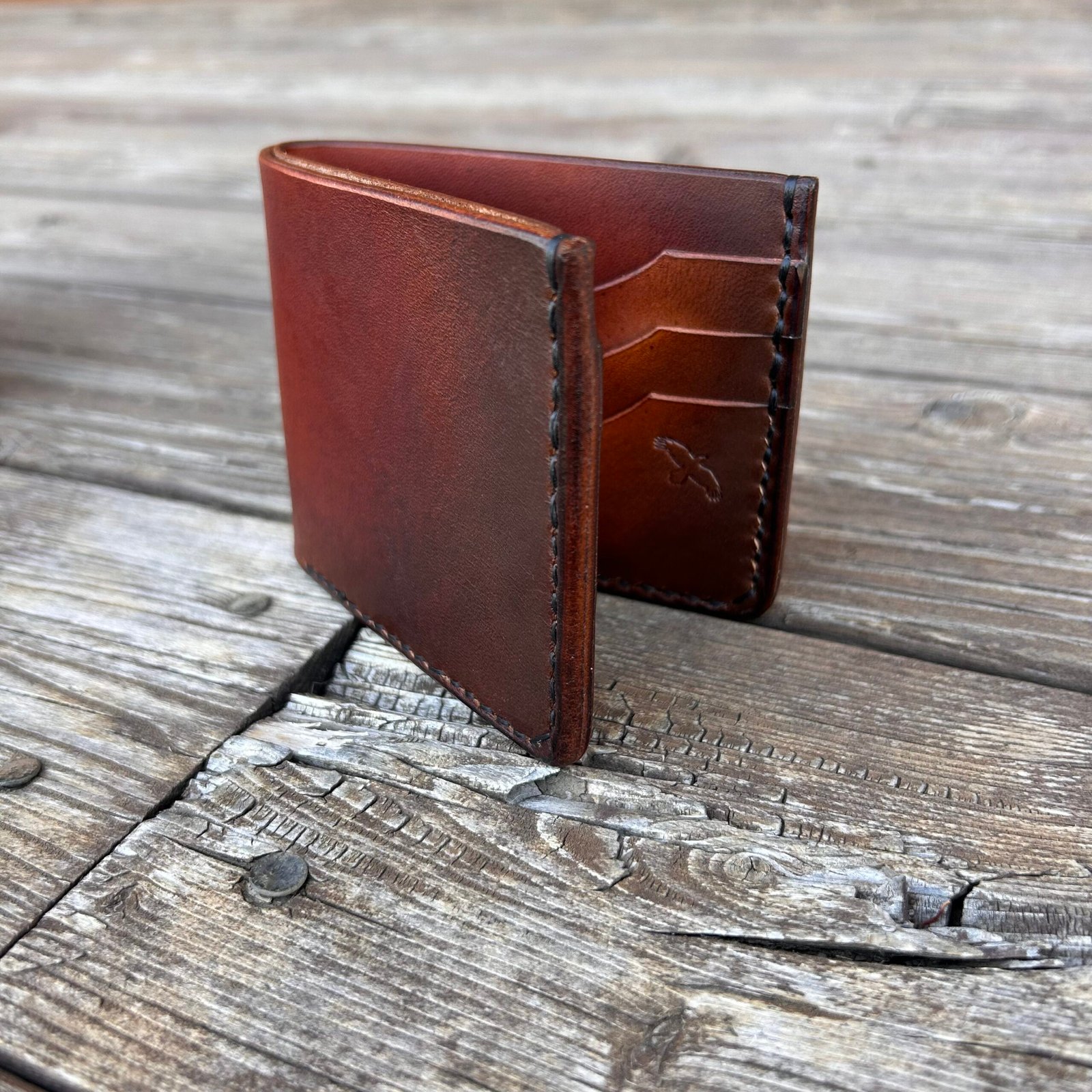 The Mission Wallet is composed of full grain vegetable-tanned leather. All wallets are handmade, and each carving includes original art and dye work, making each one unique. Minor color differences can occur.