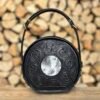 There is a small raven logo on the interior pocket. There is a loop on the interior, great for clipping airpods, keys or other small accessories. There is a snap closure to help secure the purse closed. All hardware is solid brass.