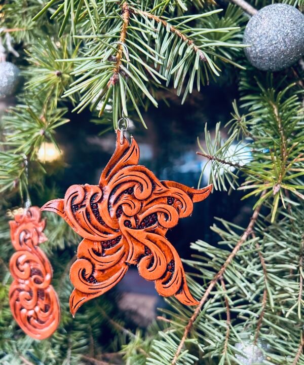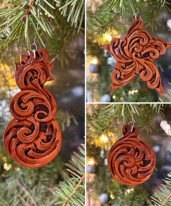 They are made with full grain vegetable-tanned leather and each one is handmade. Minor color and carving differences can occur. There is a small Windy Raven stamp on the back.